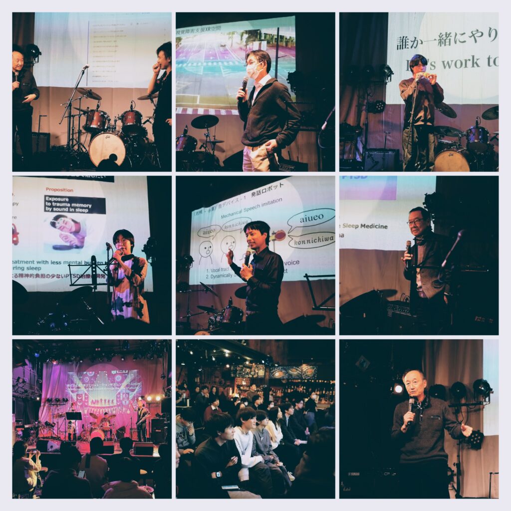 ライブハウスを会場に,バンド演奏・楽器演奏を取り入れながらの研究シンポジウムは初めての試みでしたが,非常に充実した会であったと存じます。また,今回の大きなテーマである「音による環世界マニピレーション」という,一見ぼんやりと捉えられがちな概念についても,皆さまと直接対話することで具体的なイメージを深め,共通認識を築くことができたことが大きな成果だったと感じております。
